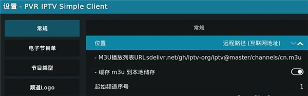 在线m3u:“常规”-“位置”设为“远程路径”,“M3U播放列表URL”填入在线m3u网址。