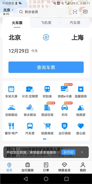 1、火车票、高铁票、汽车票、飞机票预定