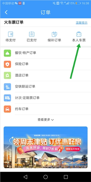 用户可以进入【我的】页面中的【我的订单】的【本人车票】处进行退票改签流程操作