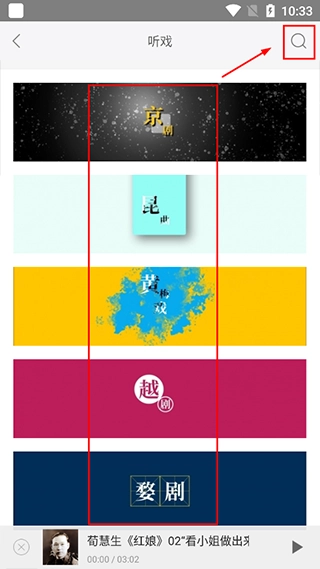 2、要是你自己有想听的戏,能直接搜索查找;要是没有,也可以选择下方自己喜欢的戏种进去挑选。