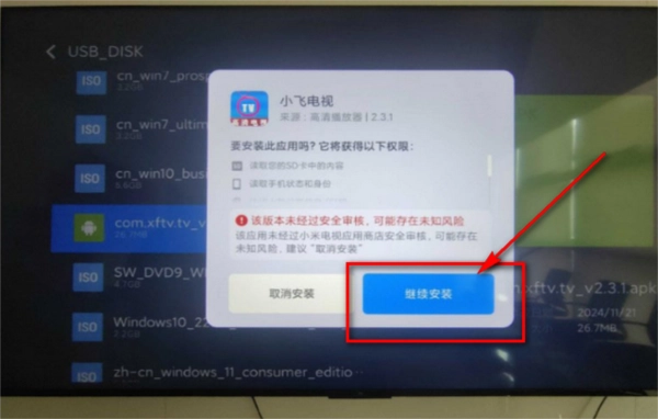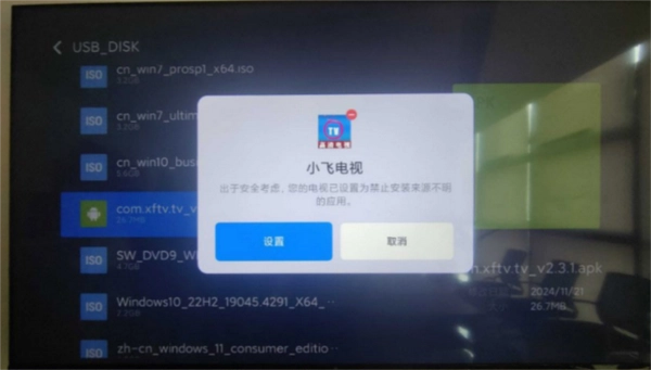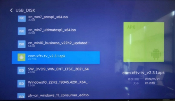 1、先在本站最新版本的小飞电视apk文件并保存到u盘上。
