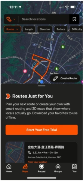 用户可以使用的路线规划工具,根据自己的需求创建个性化的运动路线。