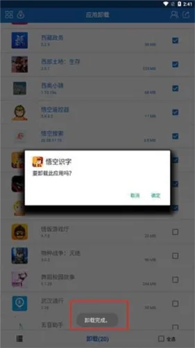 1. 智能卸载作为专业的安卓程序卸载工具,可智能清除程序文件及其关联的缓存文件。