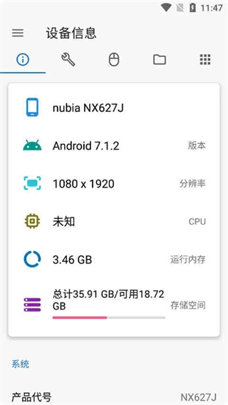 1、可以轻松获取设备的各类信息,像设备型号、CPU相关信息、运行内存情况、存储空间大小、屏幕的具体信息、网络连接的状态信息以及电池的相关信息等;