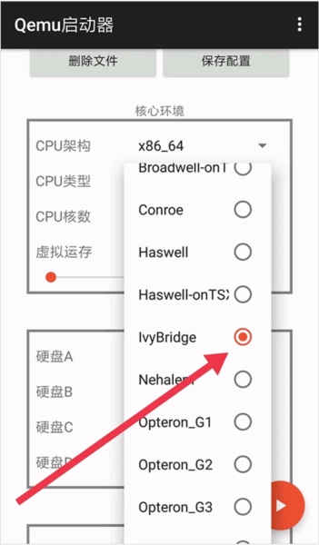 4、接着挑选一款CPU型号,在此我建议选用lvyBridge;