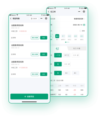 工地记工:取代传统纸笔记工模式,实现随时随地便捷记工。