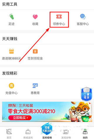 1、打开返利app苹果手机版,进入到“我的”个人信息设置界面,然后选择点击“领券中心”即可。