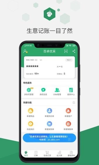 百卓优采云进销存是一款好用又实用的进销存工具,能助力用户采购丰富多样的商品,它具备功能完善、操作简便、界面清新等特点,还能让用户轻松查询订单,为大家带来智能化的便捷服务,省时又省力。