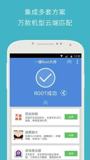 集成Z4root,UniversalAndRoot,kingroot等多种Root方式,智能匹配最适合您机型的Root方案