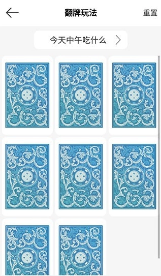 自定义决定项目,用户自己选择翻卡牌,翻到什么就是什么,可不能反悔哦,当然你也可以点击右上角重置按钮进行重置。