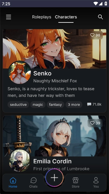 打开,用户们可以在AI角色库里面挑选自己喜欢的AI角色
