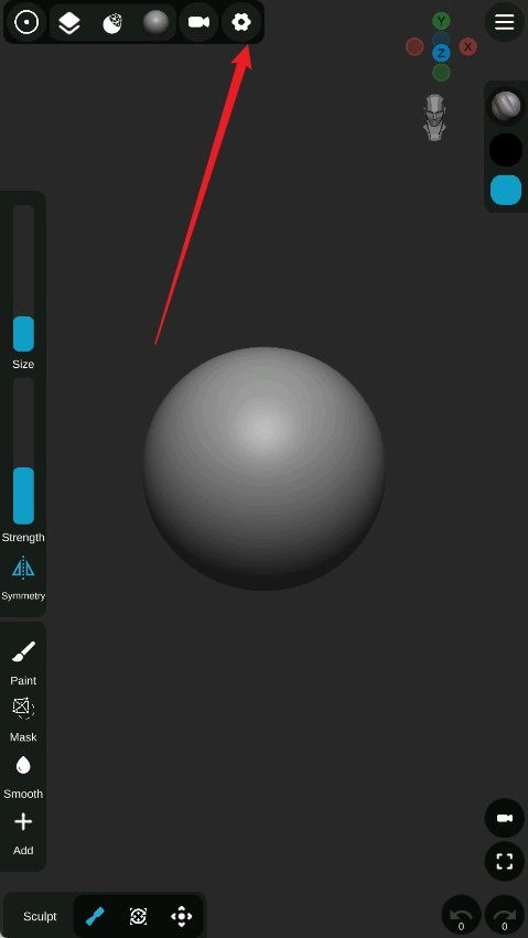 1、启动Sculpt+建模软件,进入主界面后,点击顶部那个齿轮样式的“设置”图标。