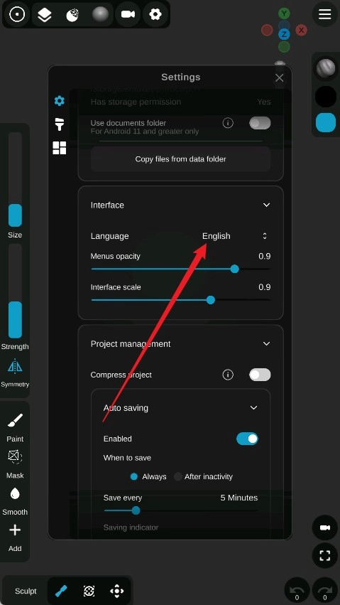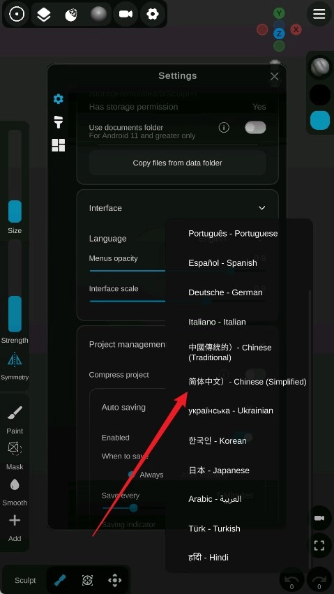 sculpt建模软件怎么设置中文?