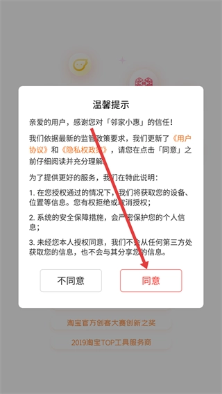 1、当【温馨提示】窗口弹出后,仔细阅读《用户协议》与《隐私政策》,随后点击【同意】按钮,就能进入应用的主界面了。
