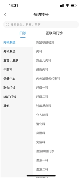 2、选择自己想要就诊的医生、科室、疾病进行挂号等。