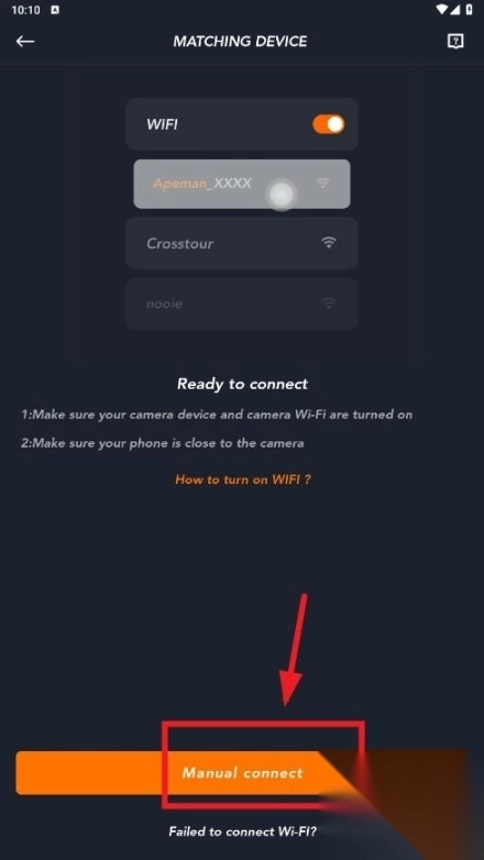 在手机的Wi-Fi列表里找到名称为apeman_xxxx的无线网络,
