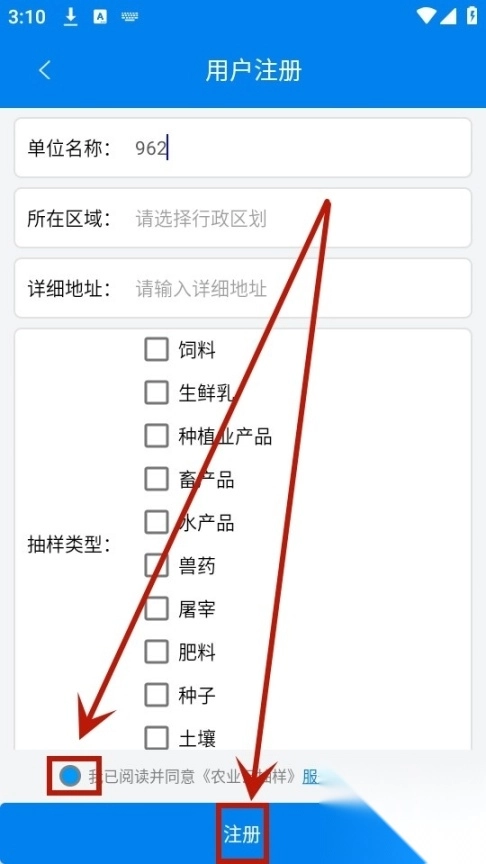 3. 输入相关信息,勾选服务协议,点击【注册】按钮即可完成操作。