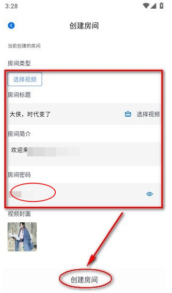 2、接着进入创建房间页面填写相关信息,之后点击创建房间”按钮。