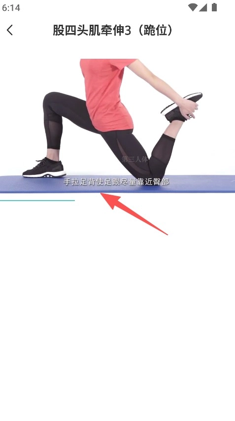 点击具体动作,如股四头肌牵伸,查看动作说明。