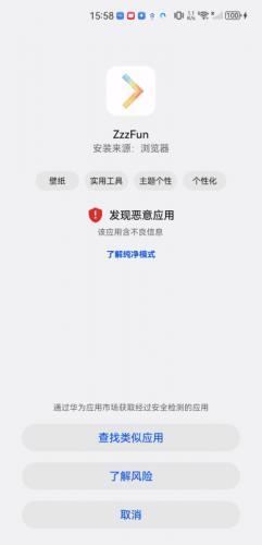 2、若系统检测到恶意应用,有可能是误判所致,此时需点击了解风险”。