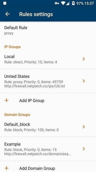 3、创建任意数量的IP和域名分组,从网络订阅IP和域名分组