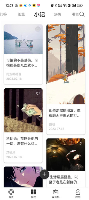 5、点击小记,这里有很多用户发布的句子。