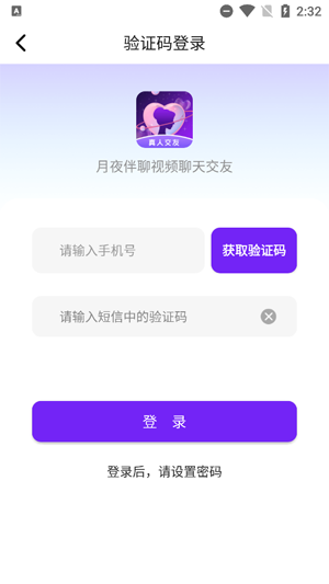 请开启您的月夜伴聊软件官方版应用,接着点击进入登录界面。