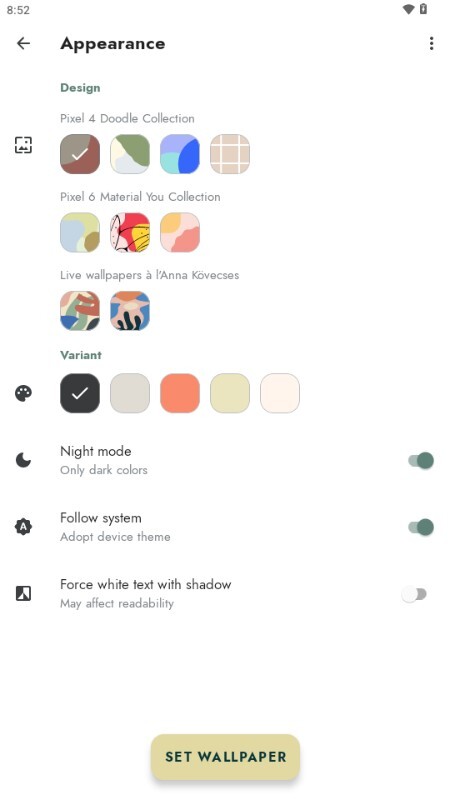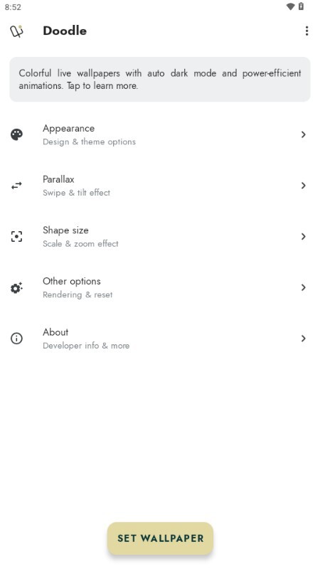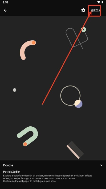 1、完成Doodle壁纸的安装后,用户可挑选心仪的壁纸样式,点击设置”按钮就能顺利将其设为手机壁纸。
