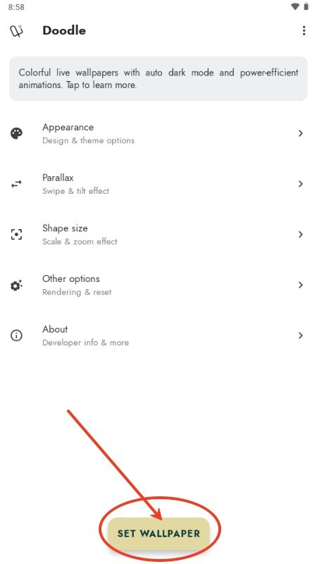3、完成设置后进入Doodle壁纸界面,即可着手进行壁纸的设置操作。