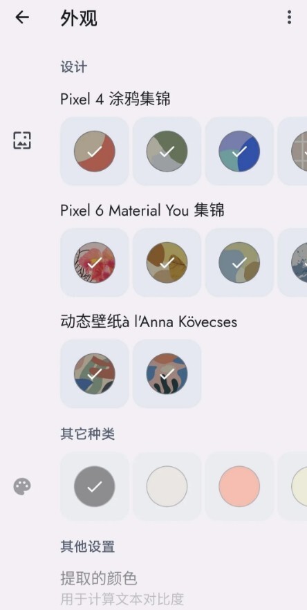 2、软件的外观板块包含涂鸦集锦、动态壁纸等内容,用户也能够提取颜色。