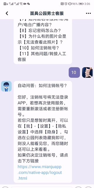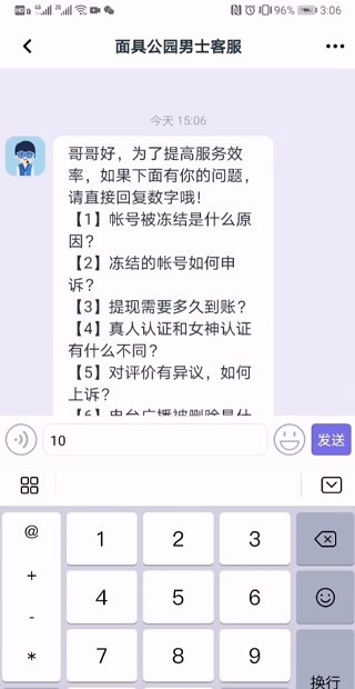 3、进入客服对话框后,依据提供的服务选项,在输入框内输入10”。