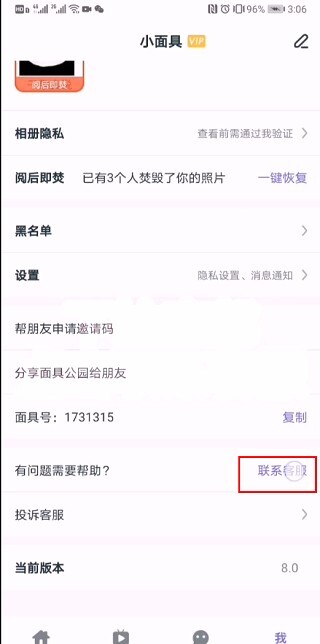 2、进入个人中心界面后,点击选项列表里的联系客服”选项。