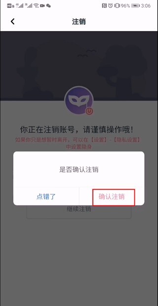 6、最后在弹出的提示窗口里,点击确认注销”按钮就可以了。
