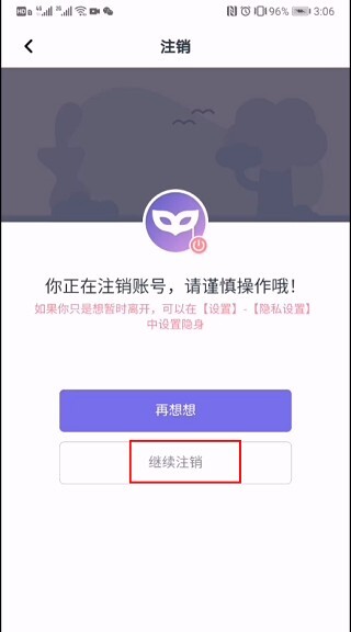 5、接着在弹出的注销”窗口里,直接点击继续注销”按钮。