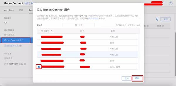 第一步:在iTunes Connect中添加测试员用户