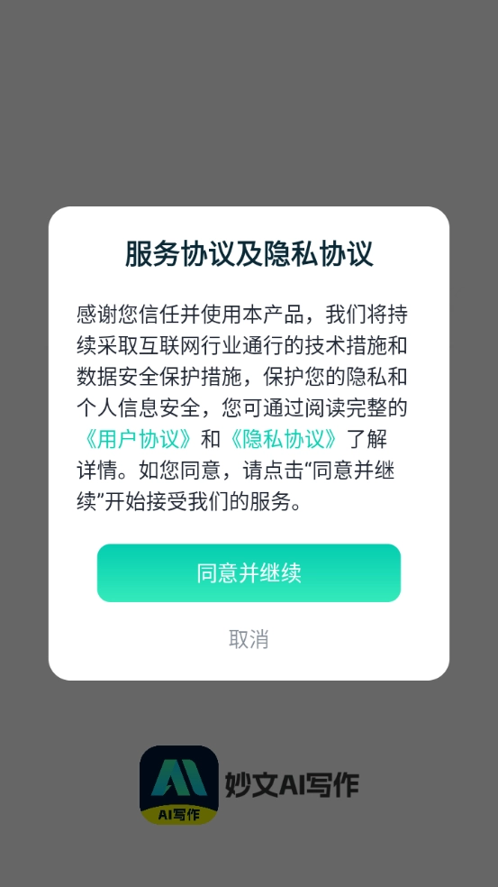 首先在本站完成妙文AI写作的安装,并同意相关的隐私政策与用户协议。