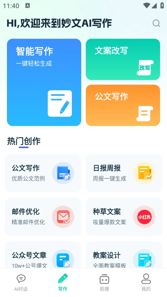 支持多种类型的写作,满足不同用户的需求。