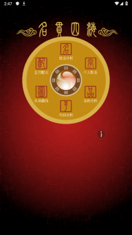 1、在本站免费安装该软件的,打开进入,这里的八卦阵铜钱上有六个功能分别是姓名分析、个人取名、名称分析、号码分析、生命曲线和五行配对。
