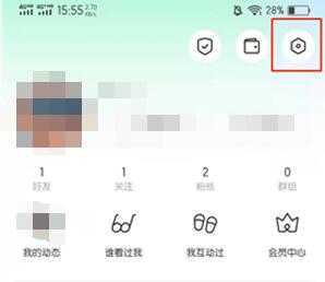 1、启动陌陌应用后,点击界面右上角呈齿轮样式的设置”图标。