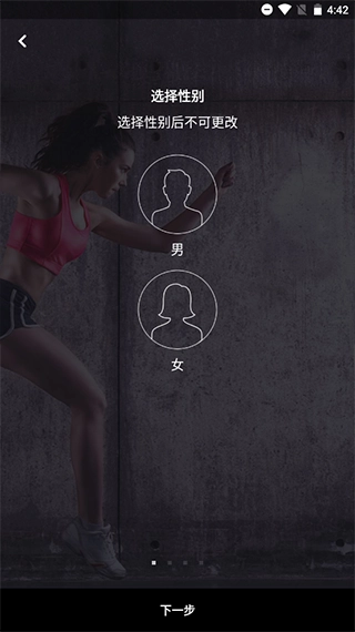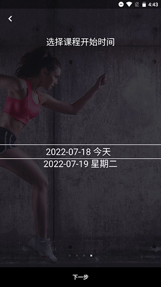 选择健身水平,例如初级、中级、高级。