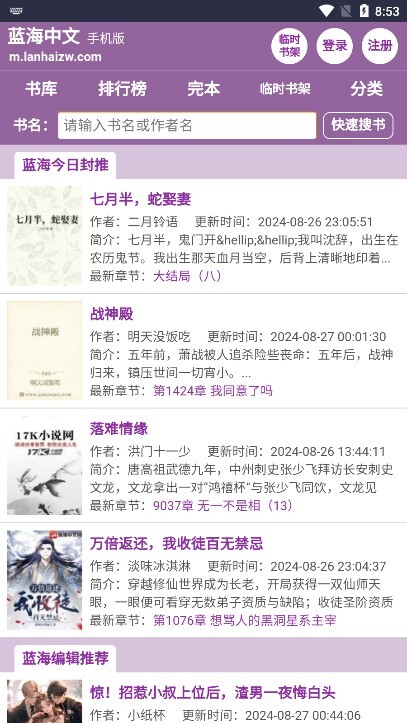 蓝海搜书致力于解决用户的阅读荒烦恼,软件拥有庞大的小说资源库,能够轻松满足用户的需求。