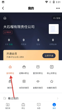 2、进入招聘网界面后,点击底部的【我的】选项,进入个人账号管理页面,然后查看企业数据。
