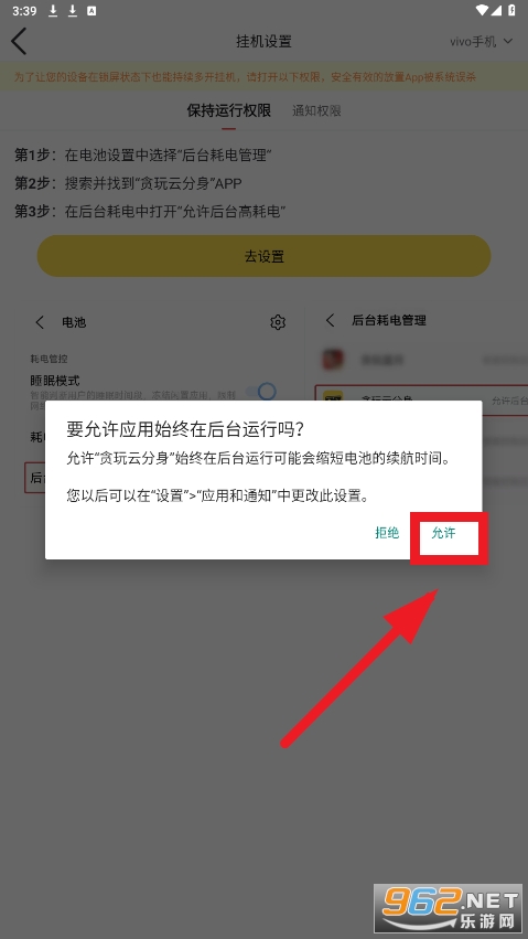 挂机设置和通知权限