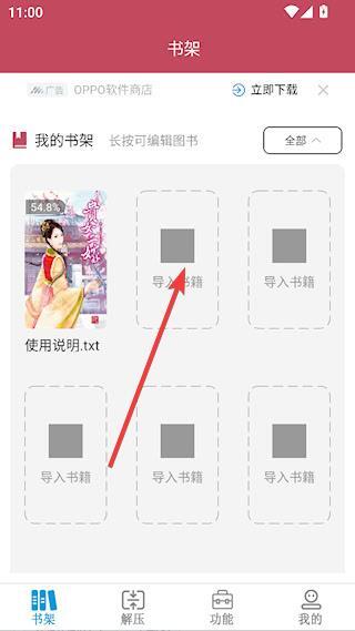 1、打开Epub阅读器APP,首页可以导入书籍。