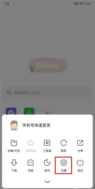 于浏览器的主界面当中,寻觅并点击位于界面下方的设置菜单。