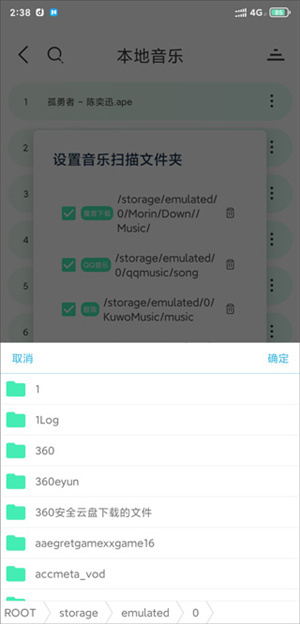 点击扫描设置,可以设置音乐扫描的的文件夹