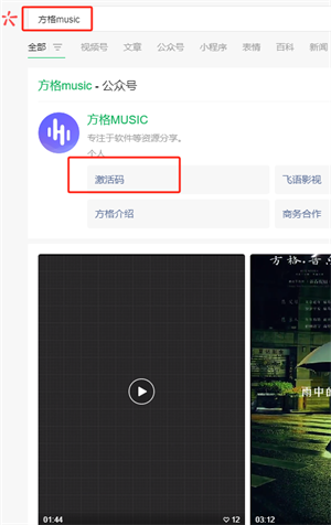 在公众号中搜索“方格music”,找到并点击“激活码”选项,就能查看最新的激活码了。