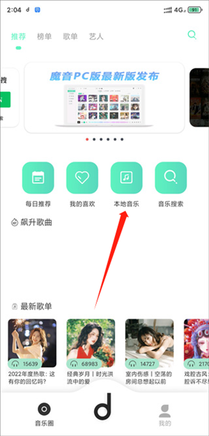 进入本地音乐,会自动扫描本地的音乐,进行添加