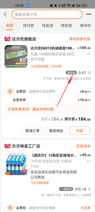 付款完成后,我们只需耐心等待收货即可,届时能看到系统提示:确认收货后的16天内,返利金额就会到账。