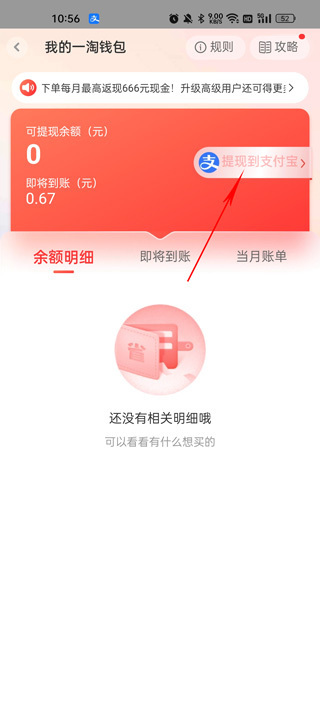 返利金额会发放到我的页面的一淘钱包,点击一淘钱包提现到支付宝即可。